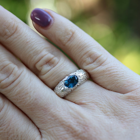 Once the ring has been cast it is time to file and sand your piece the desired look you want. There is naturally texture on sand cast pieces due to the process, however, you can achieve a high polish on your piece.