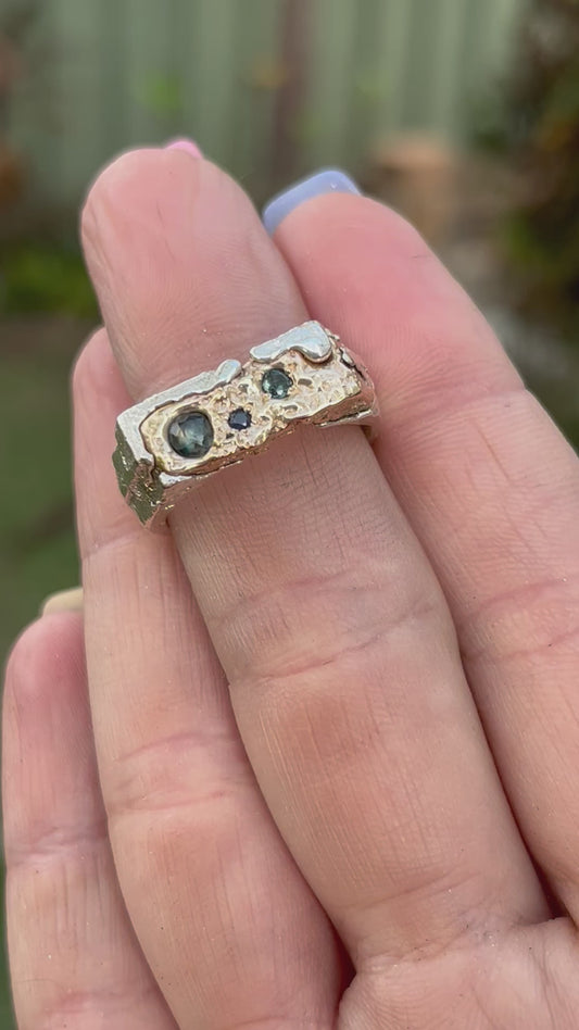 Rocky Shoreline Signet with Sapphires - size 9.5