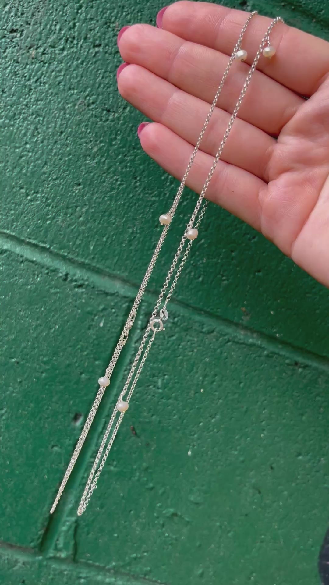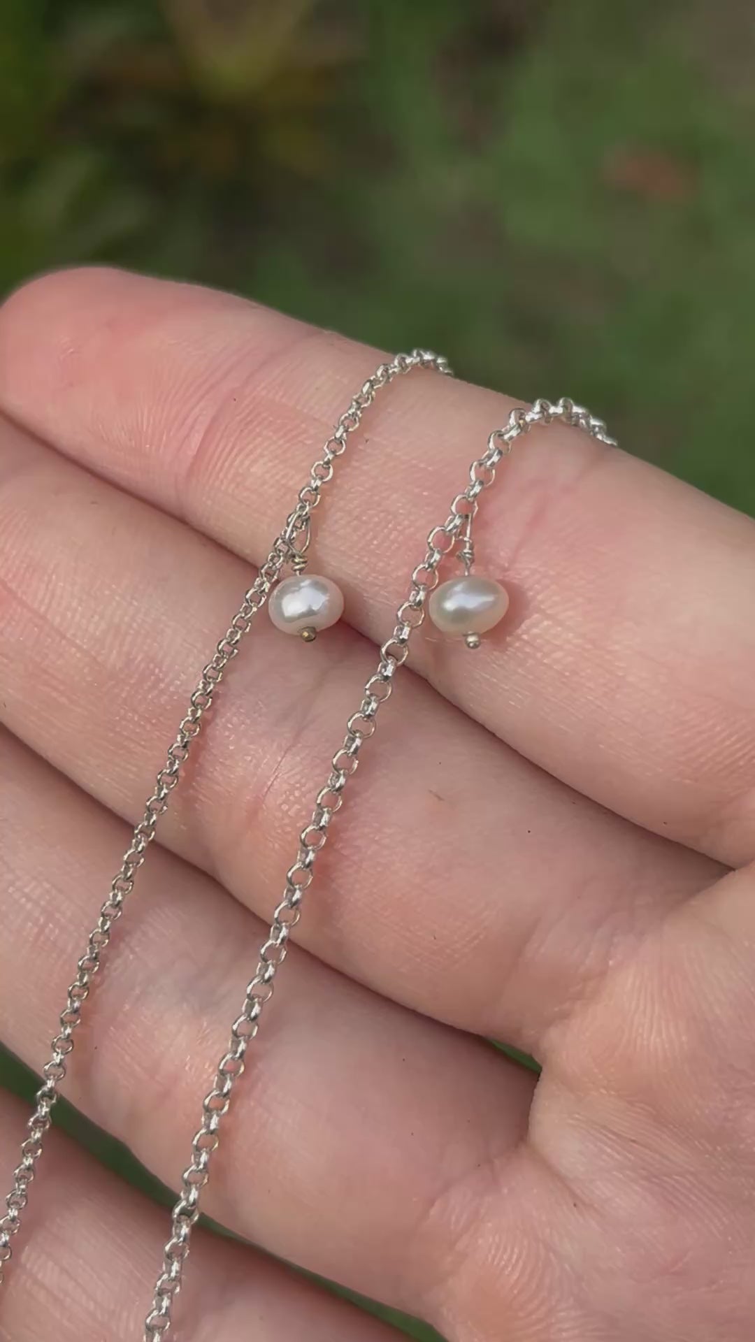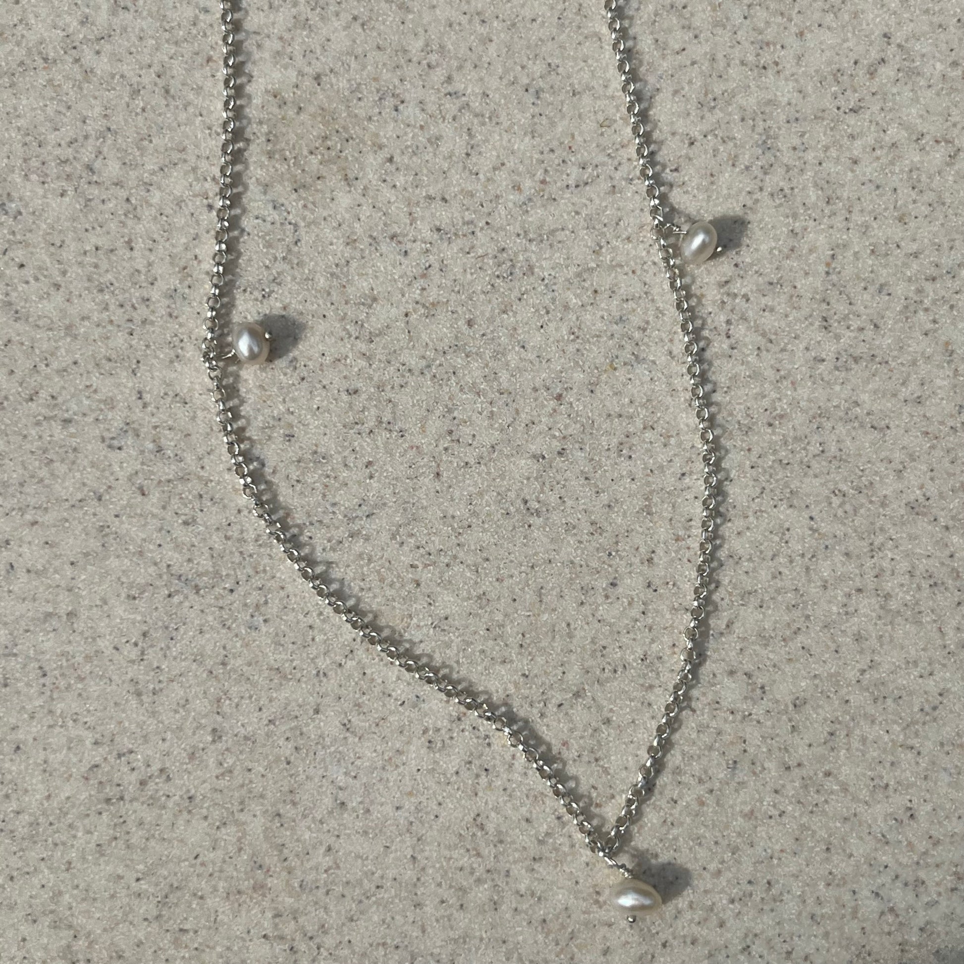 This necklace has 3 fresh water pearls on a sterling silver chain.