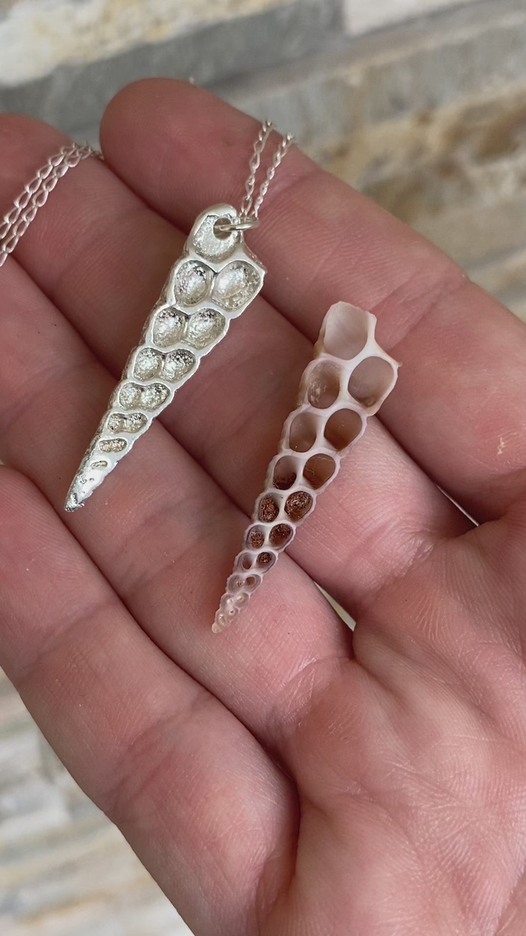 This shell pendant is a sand cast replica of the original shell that was found locally in North Queensland. The pendant is solid sterling silver and weighs 7.5g.
