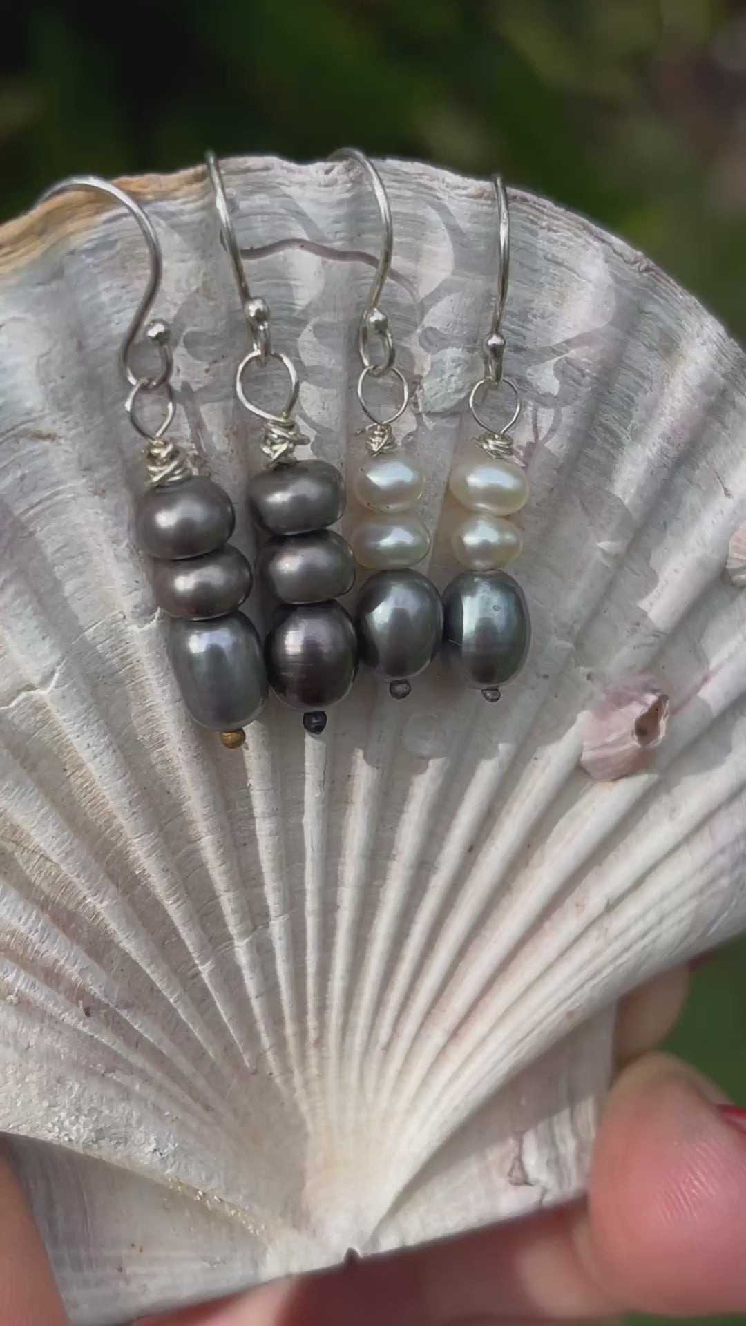 Fresh water pearl earrings 3 pairs available 1 x black pearls and 2 x white with black pearls.
