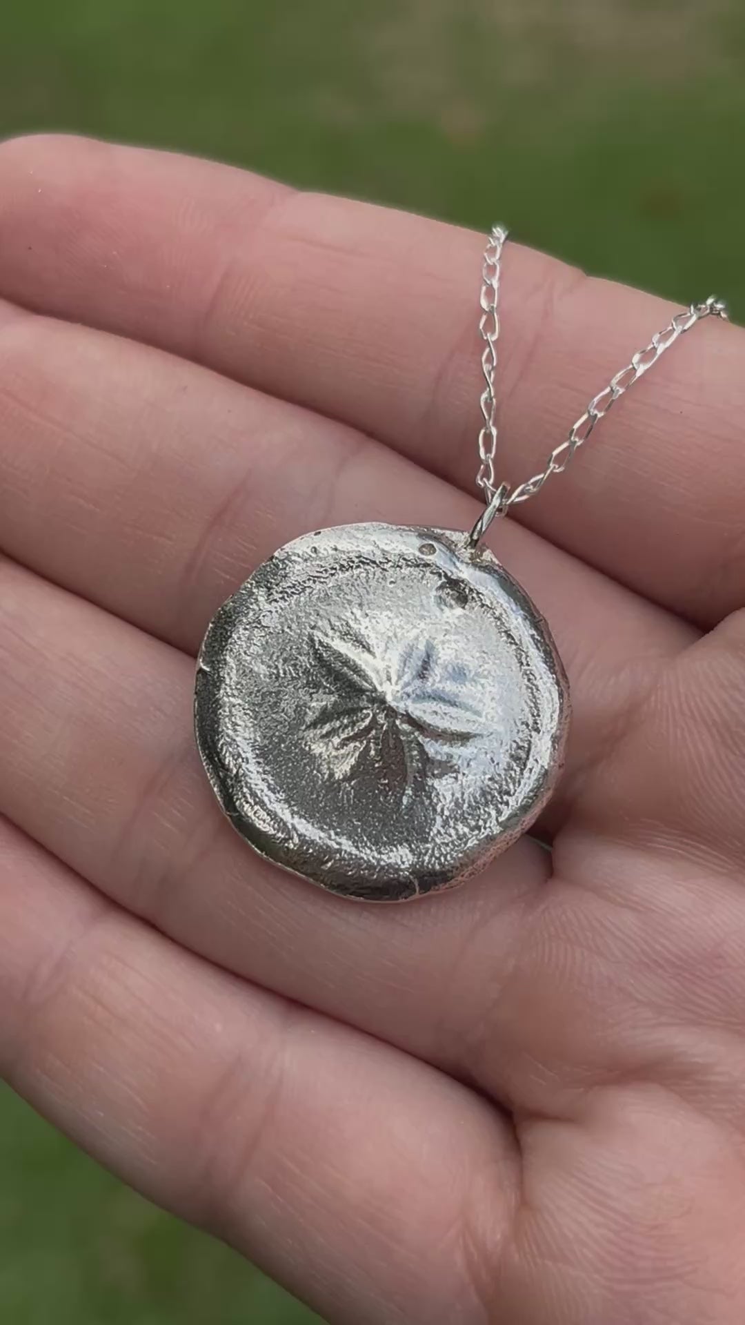 This pendant was made using a sand dollar collected locally and sand cast to create an exact replica.