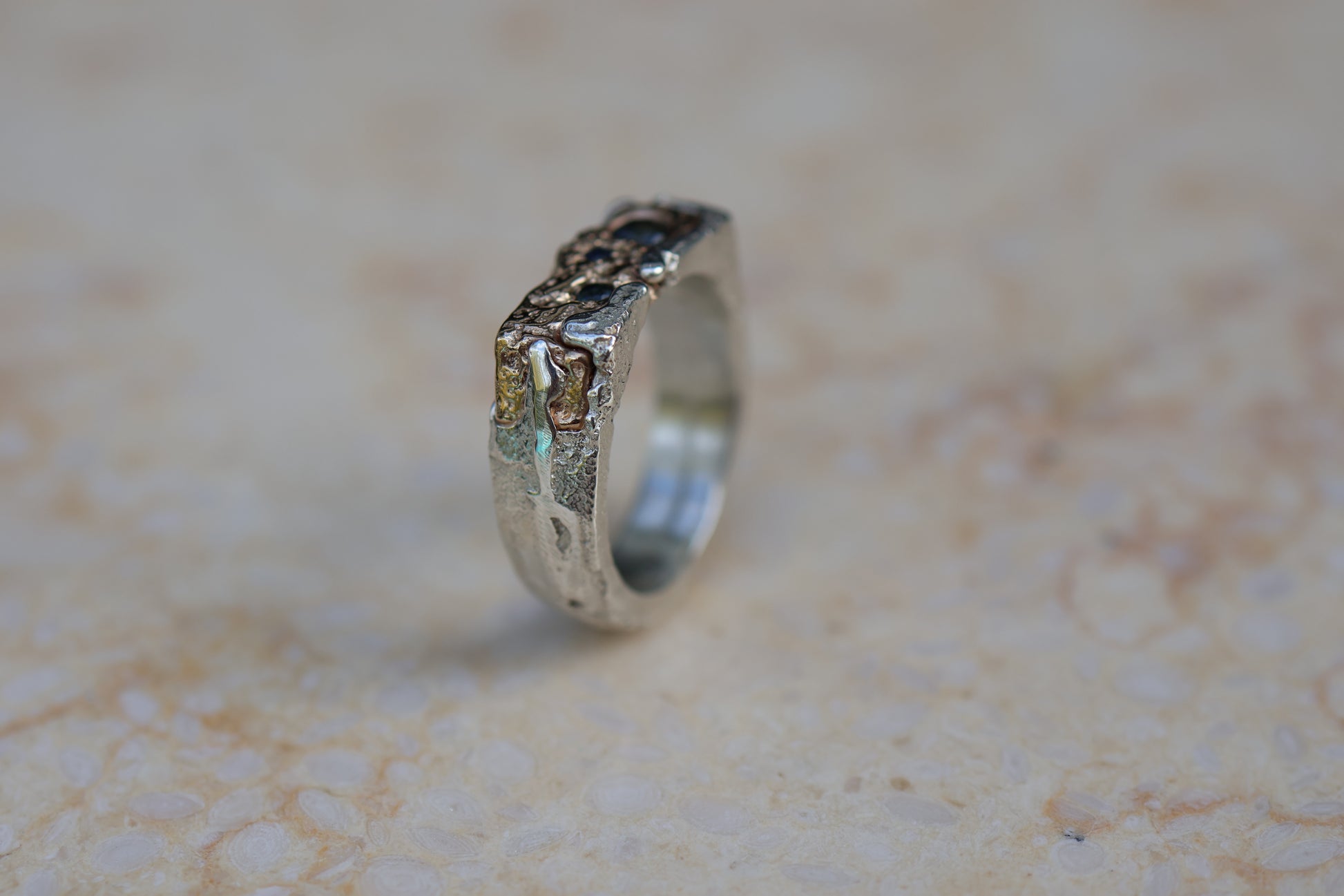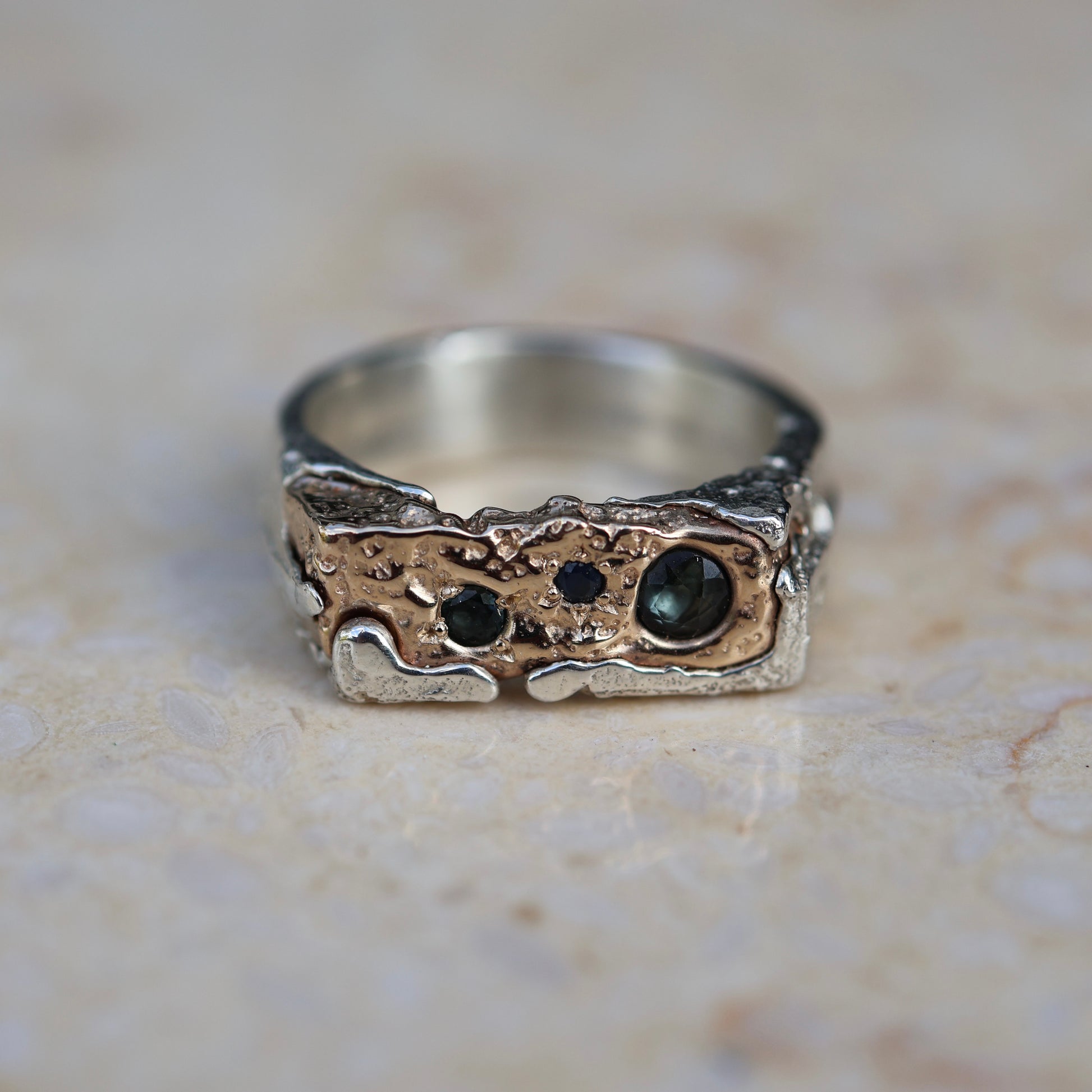 Rocky Shoreline Signet with Sapphires - size 9.5