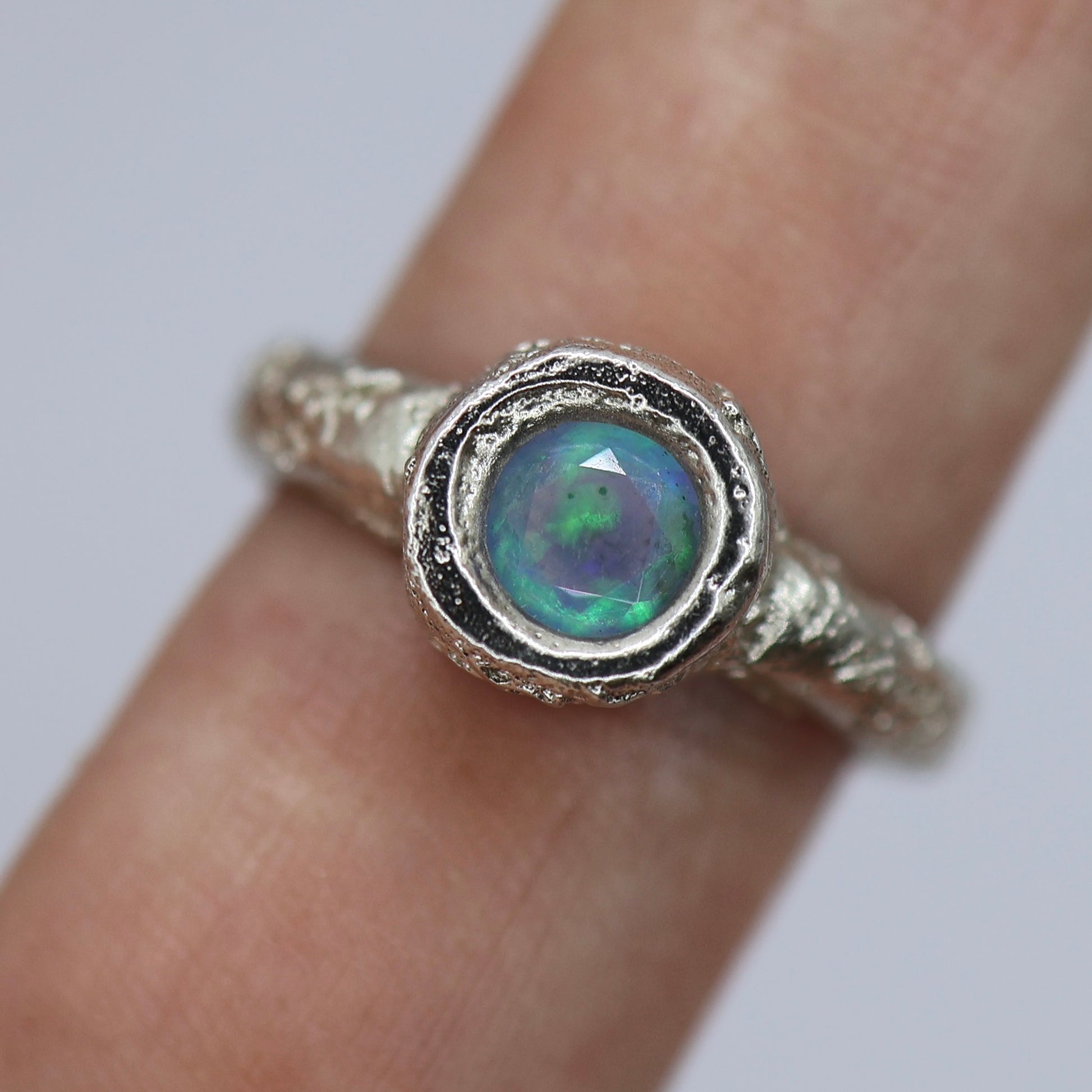 Sand Cast ring with Cultured Opal - 8