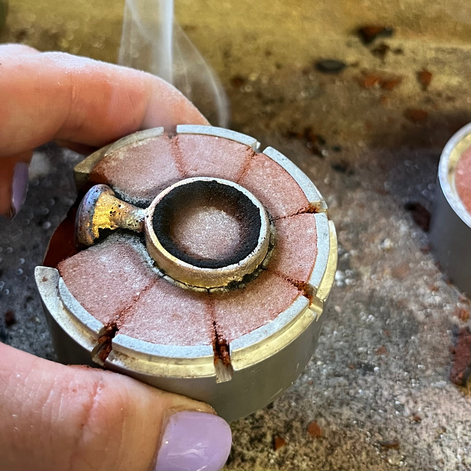 Once the metal is poured you are able to open the mould straight away to reveal your SOLID sterling silver ring