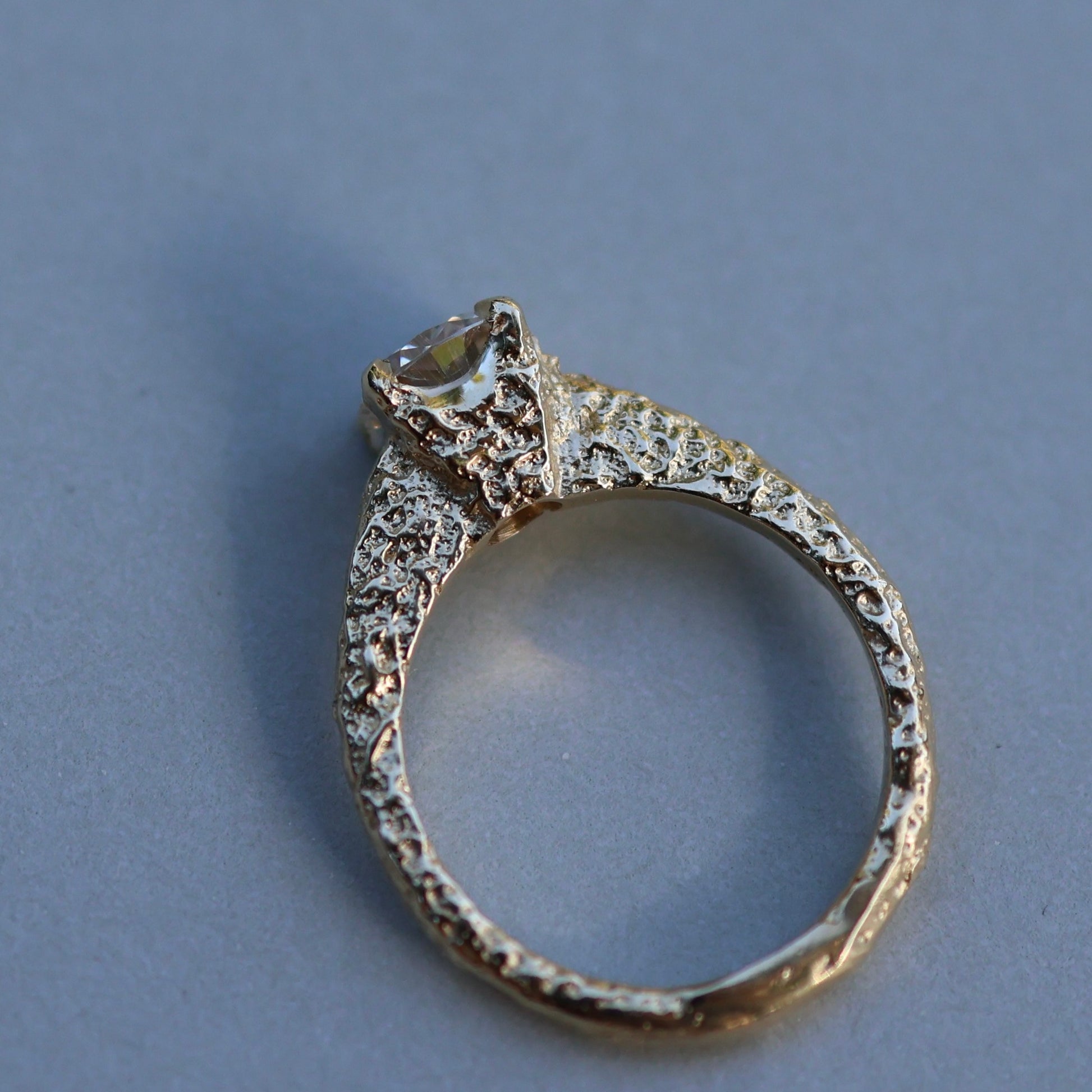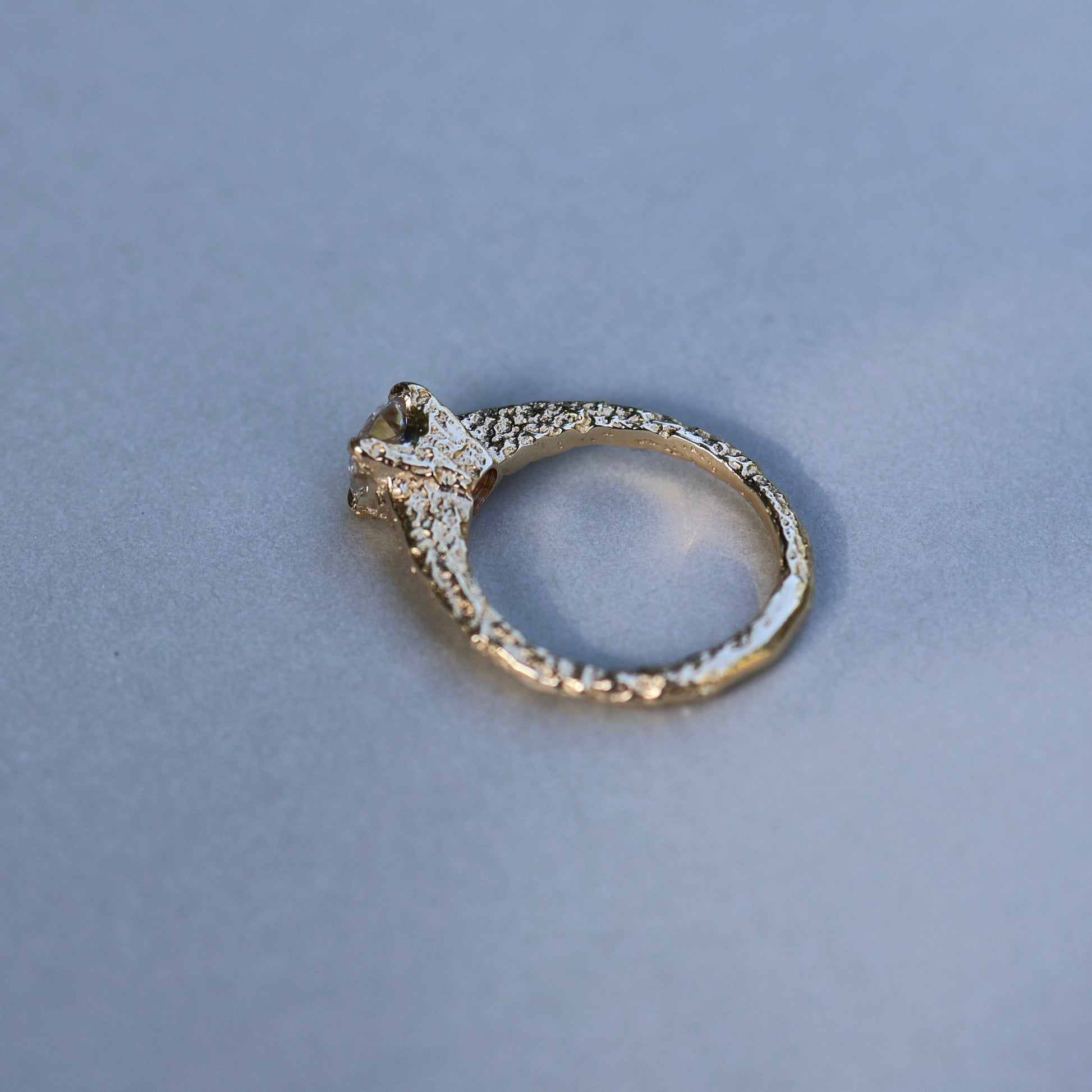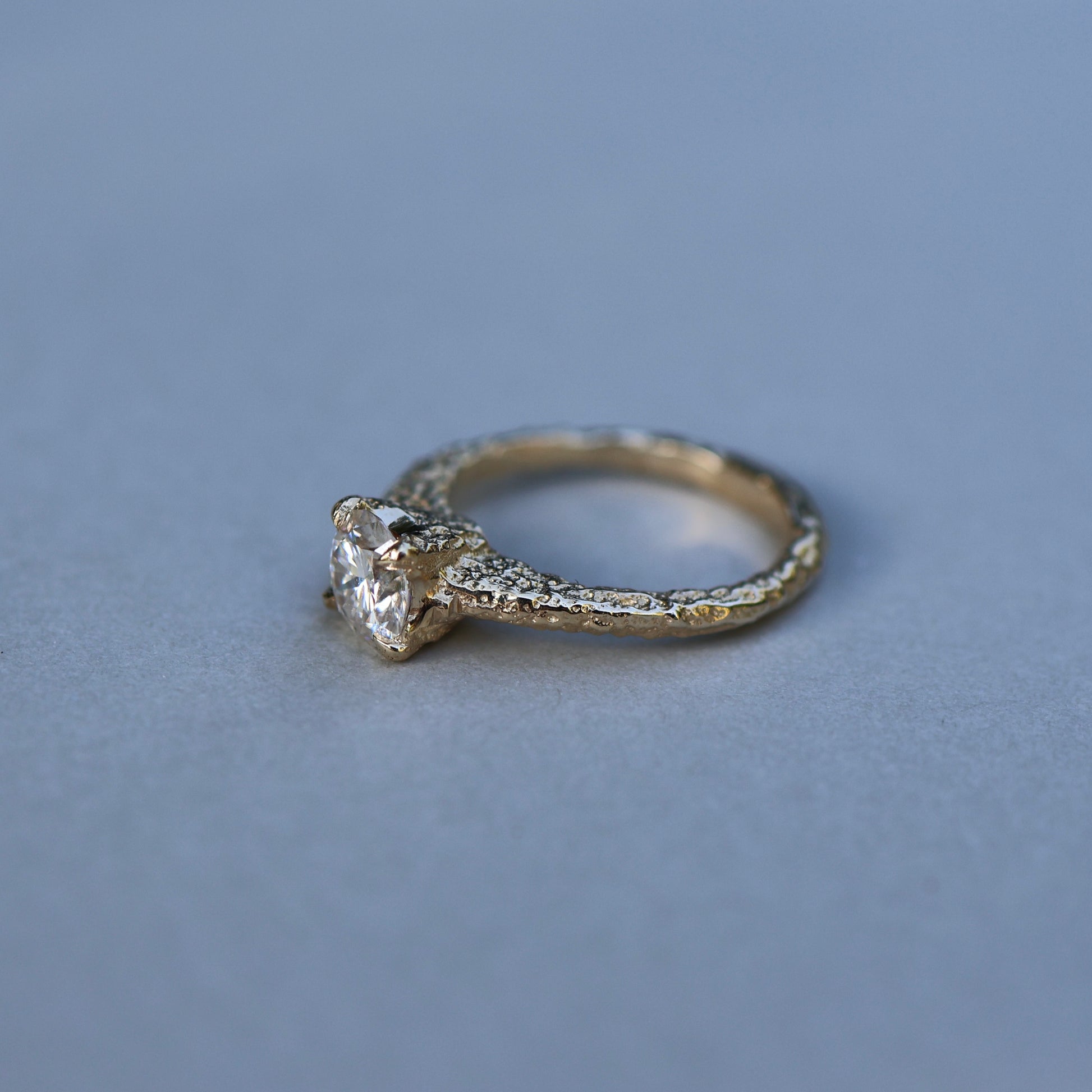 This timeless engagement style rings is hand crafted using a process called sand casting. Each ring is one of a kind featuring my unique signature texture created during the casting process.