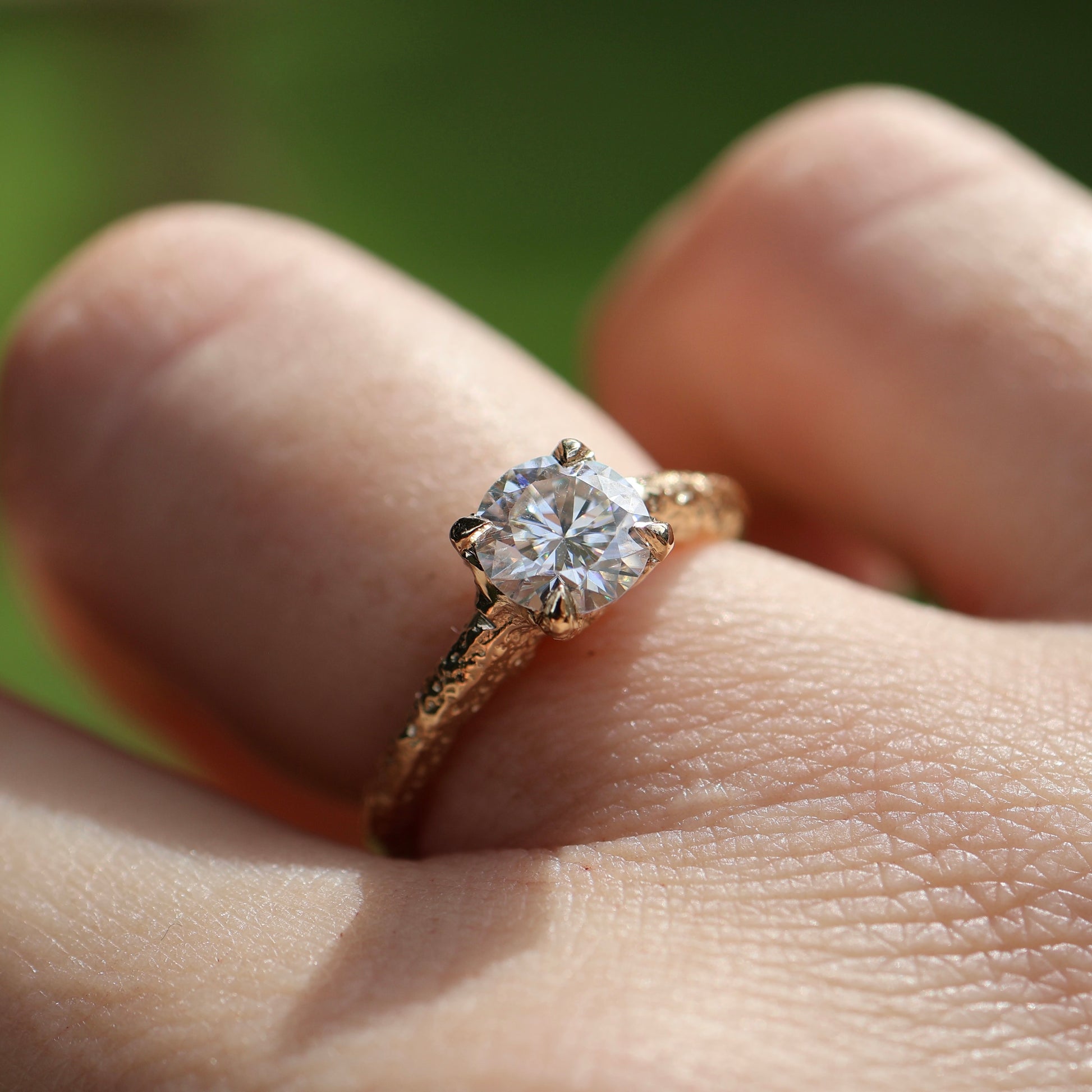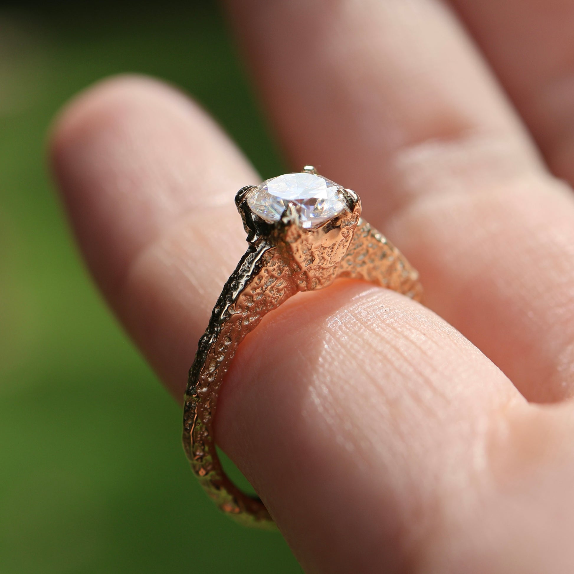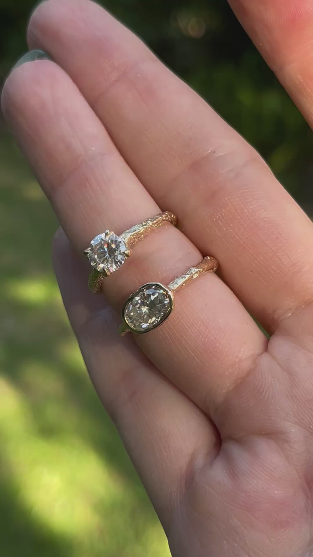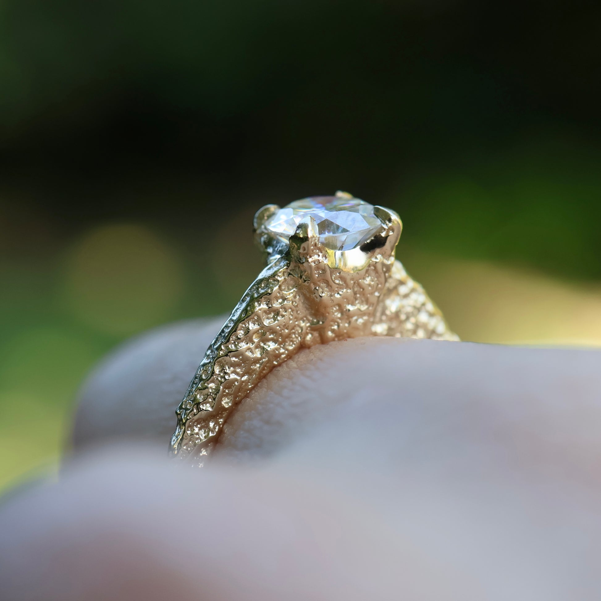 This timeless engagement style rings is hand crafted using a process called sand casting. Each ring is one of a kind featuring my unique signature texture created during the casting process.