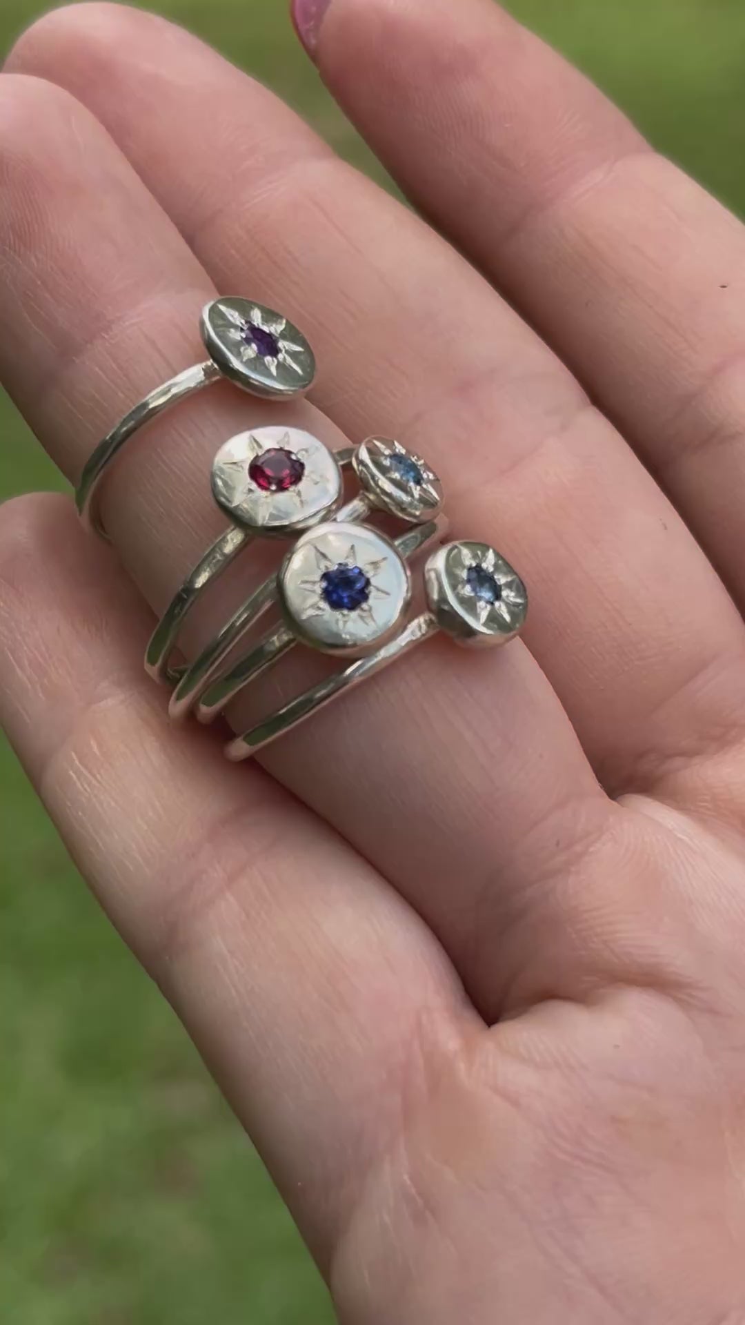 Crafted from recycled sterling silver these rings are perfect for stacking and feature 3mm gemstones star set.