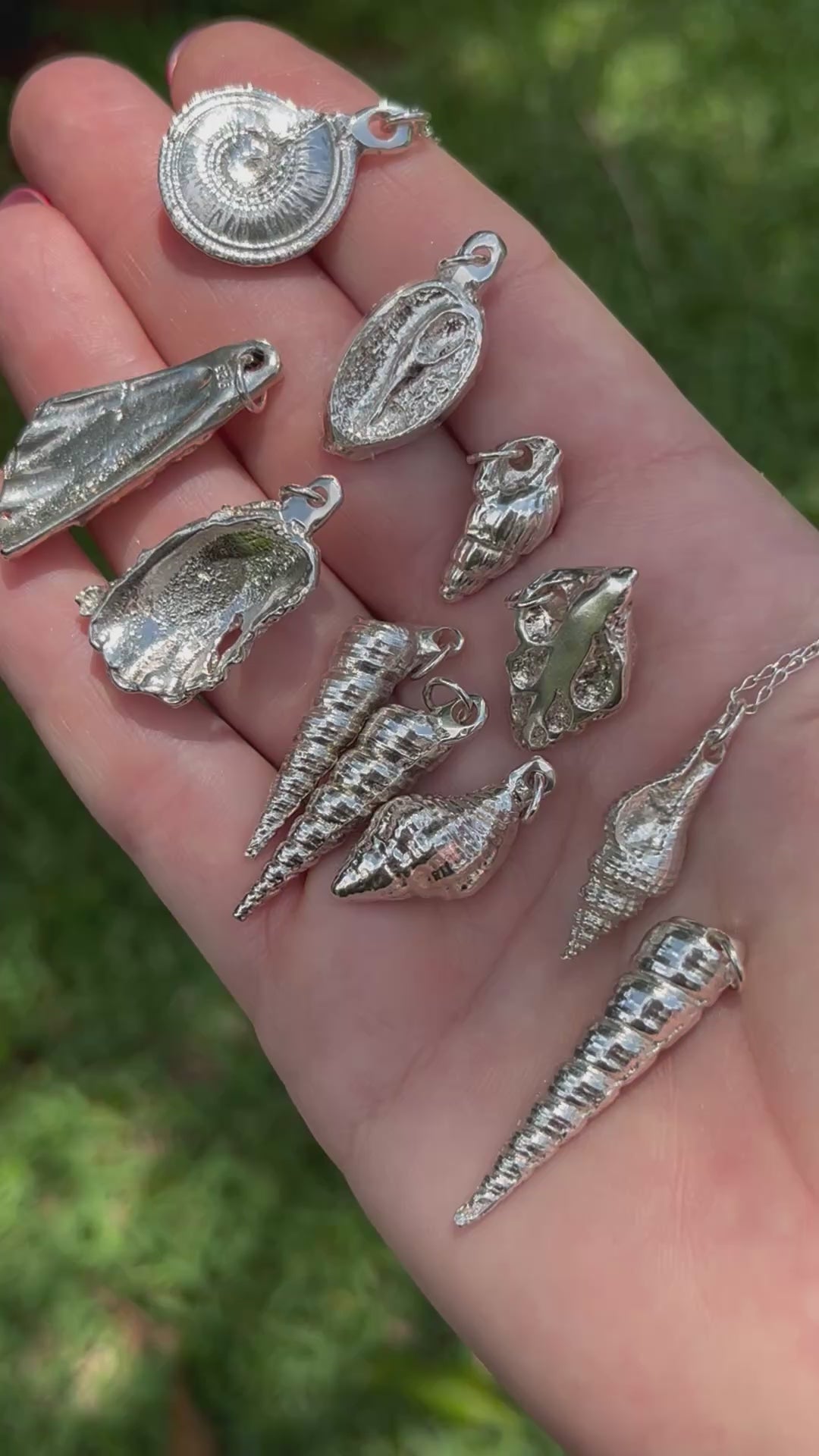 These shells have been made using recycled sterling silver and shells collected locally and sand cast to create an exact replica of the original shell.