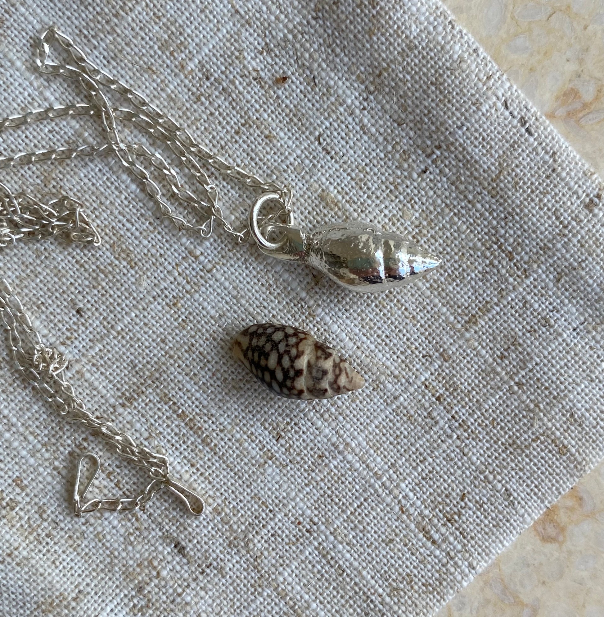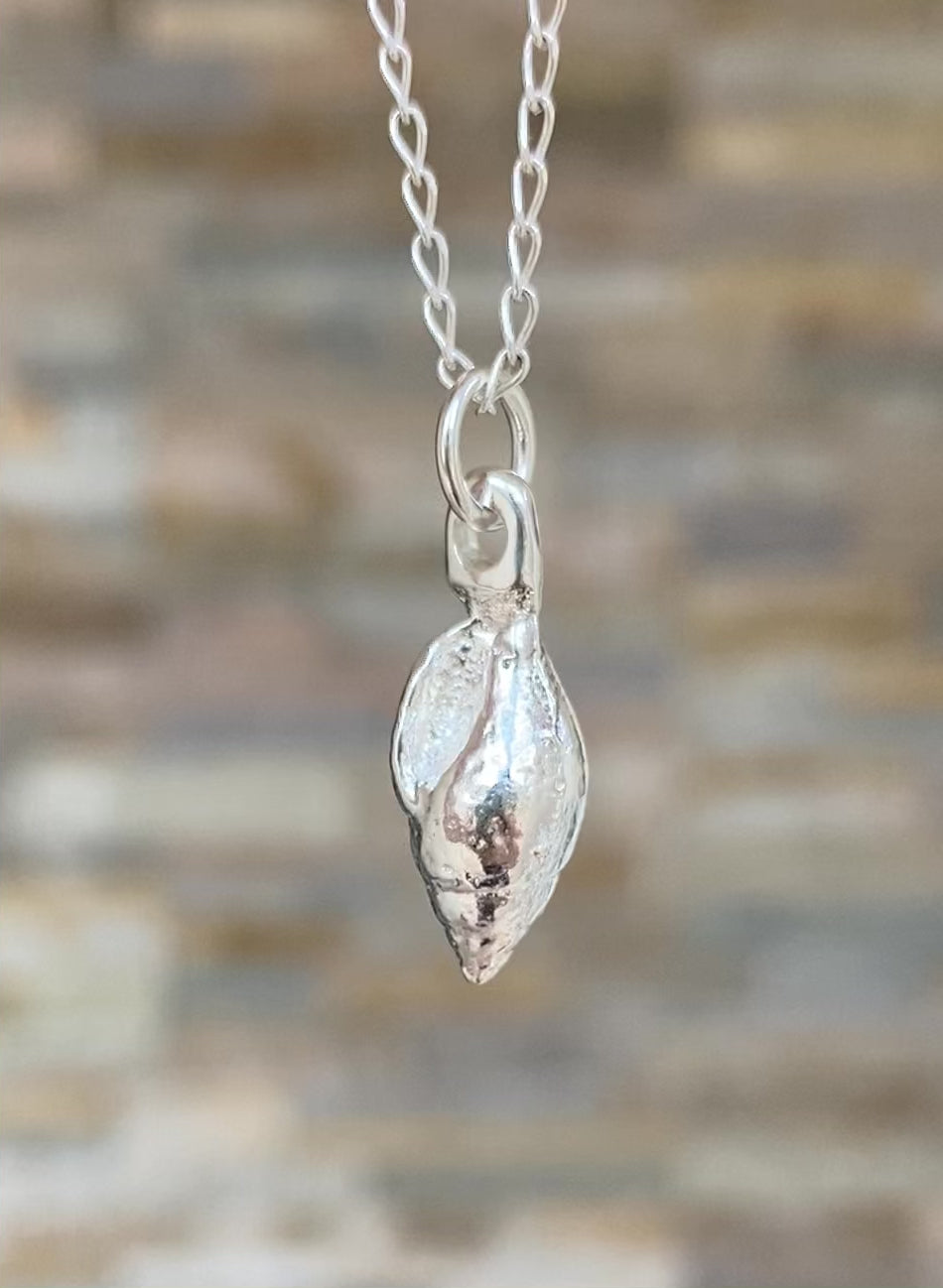 This shell pendant is a sand cast replica of the original shell that was found locally in North Queensland. The pendant is solid sterling silver and weighs 3.7g.