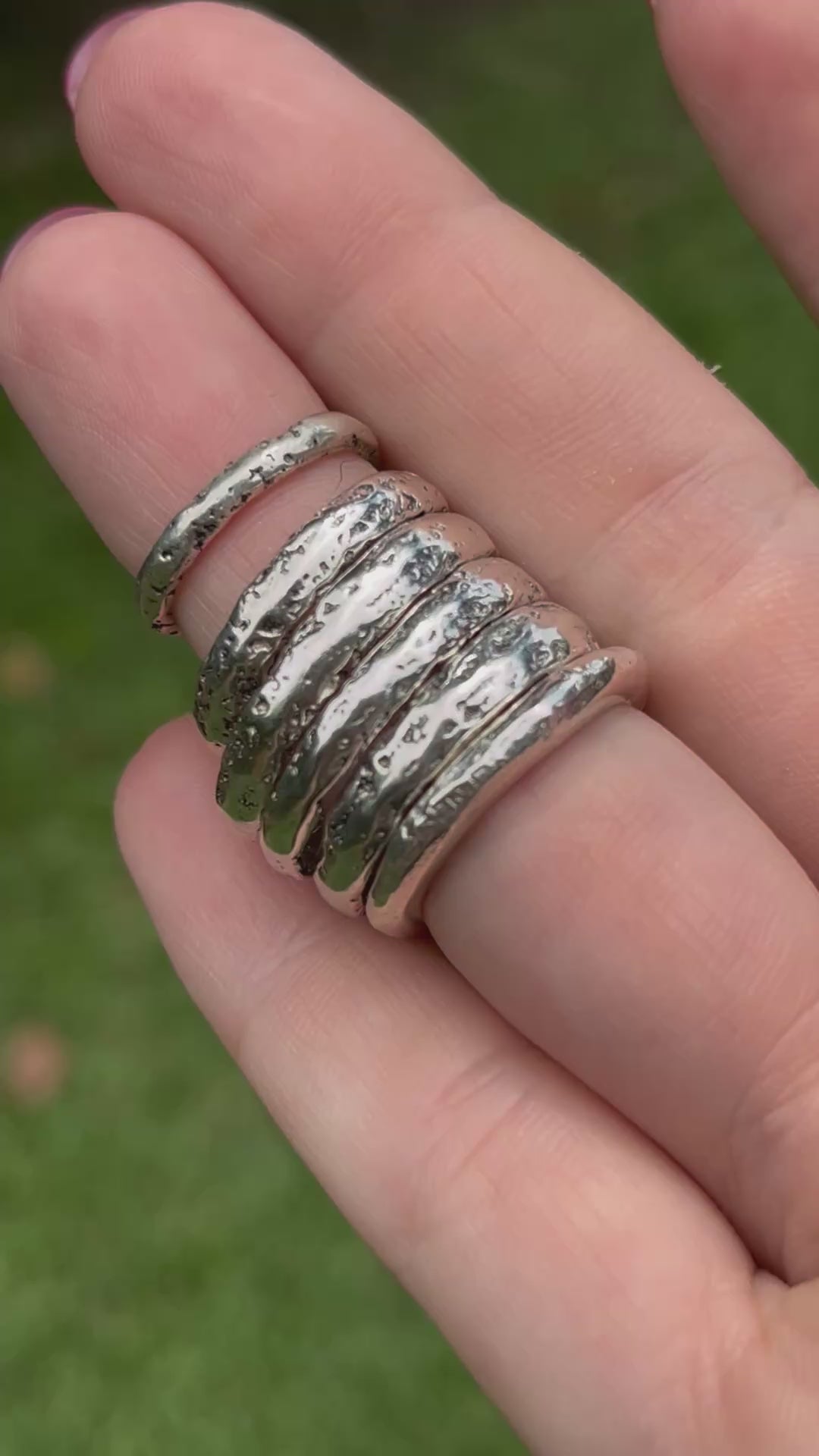 There rings have been made with recycled sterling silver and sand cast leaving each ring with its own unique texture. If you would like gemstones added or resize please get in contact after purchase.