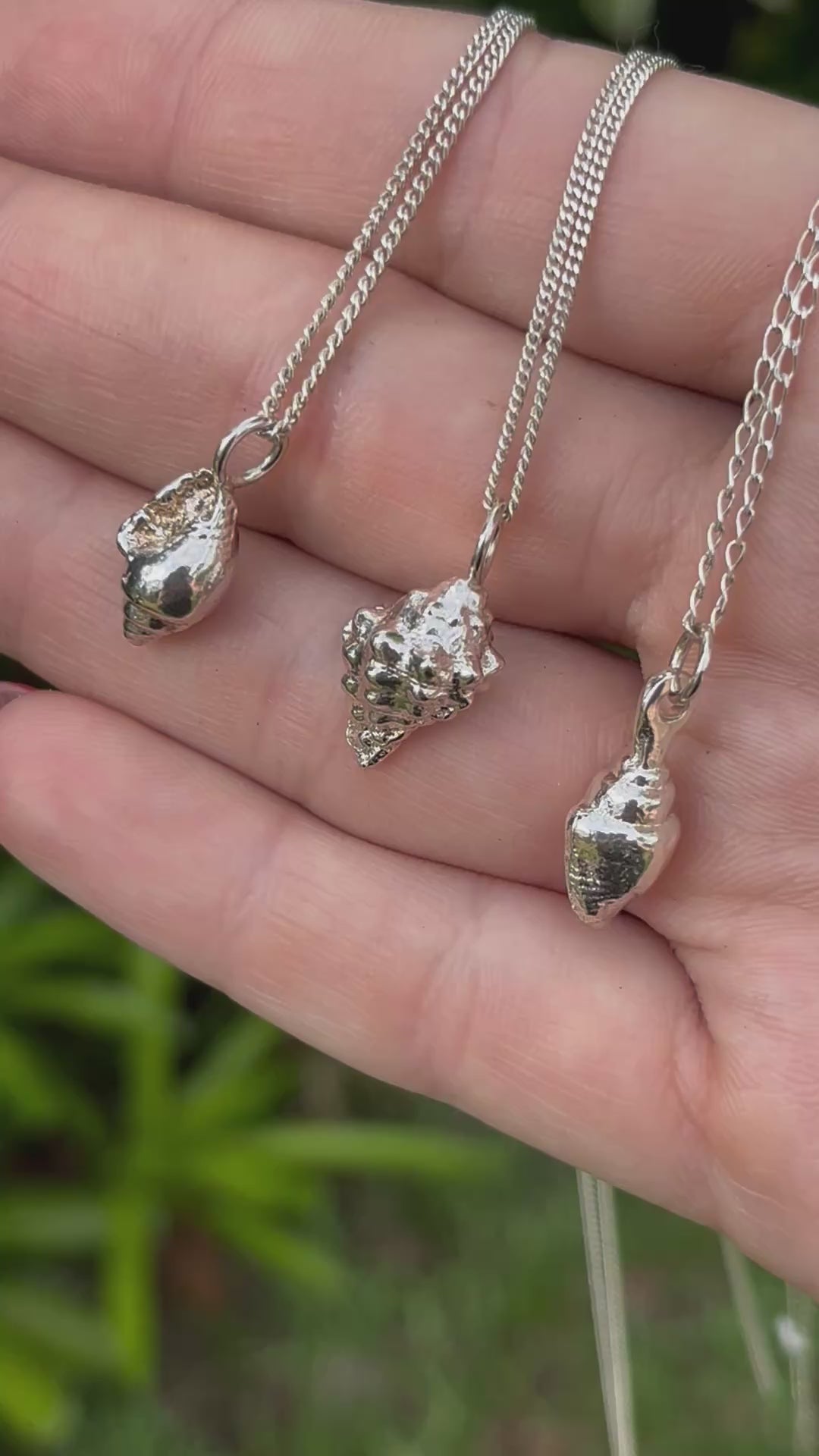 These pendants were made using shells collected locally and sand cast to create exact replicas of the original shell